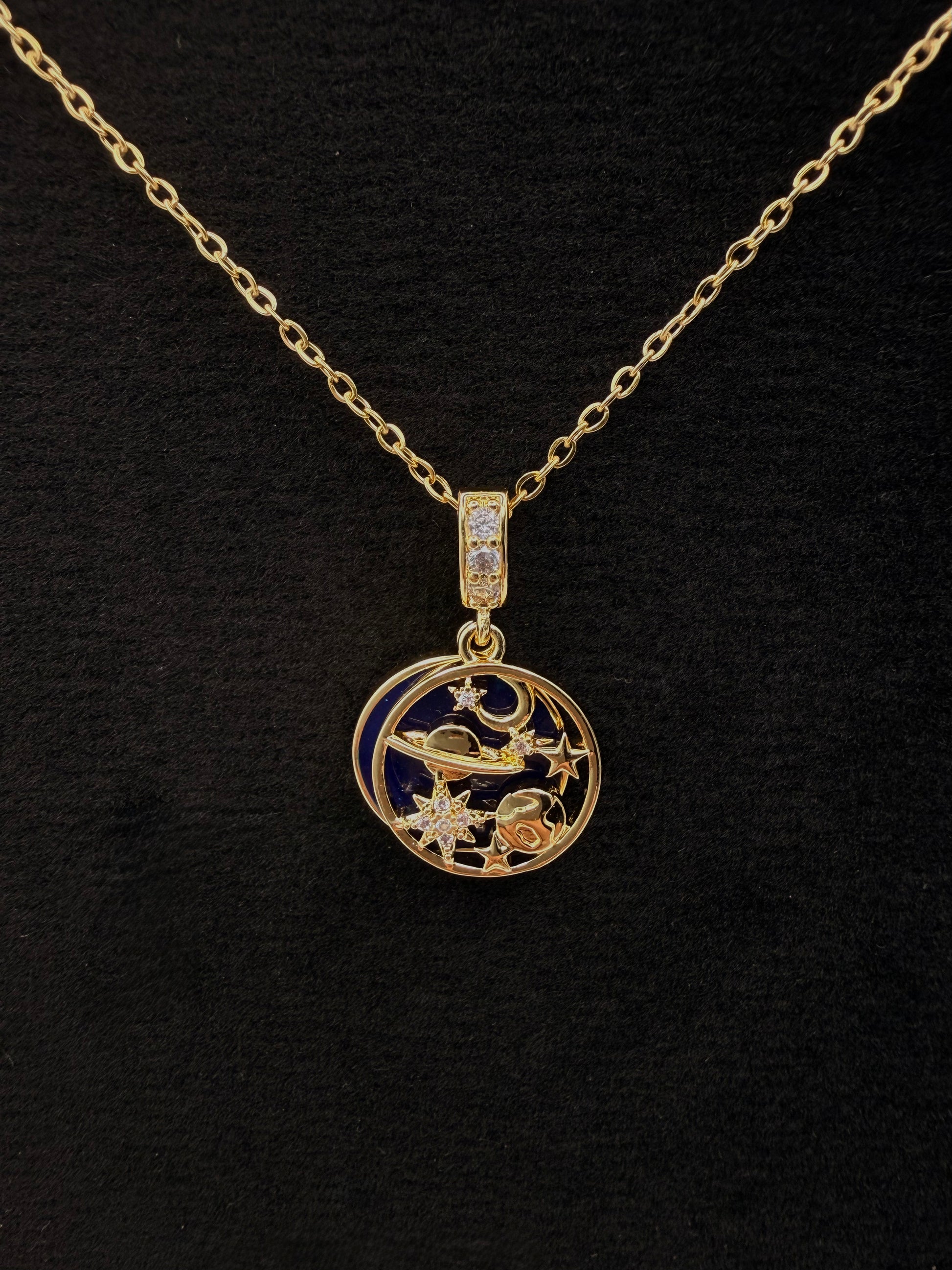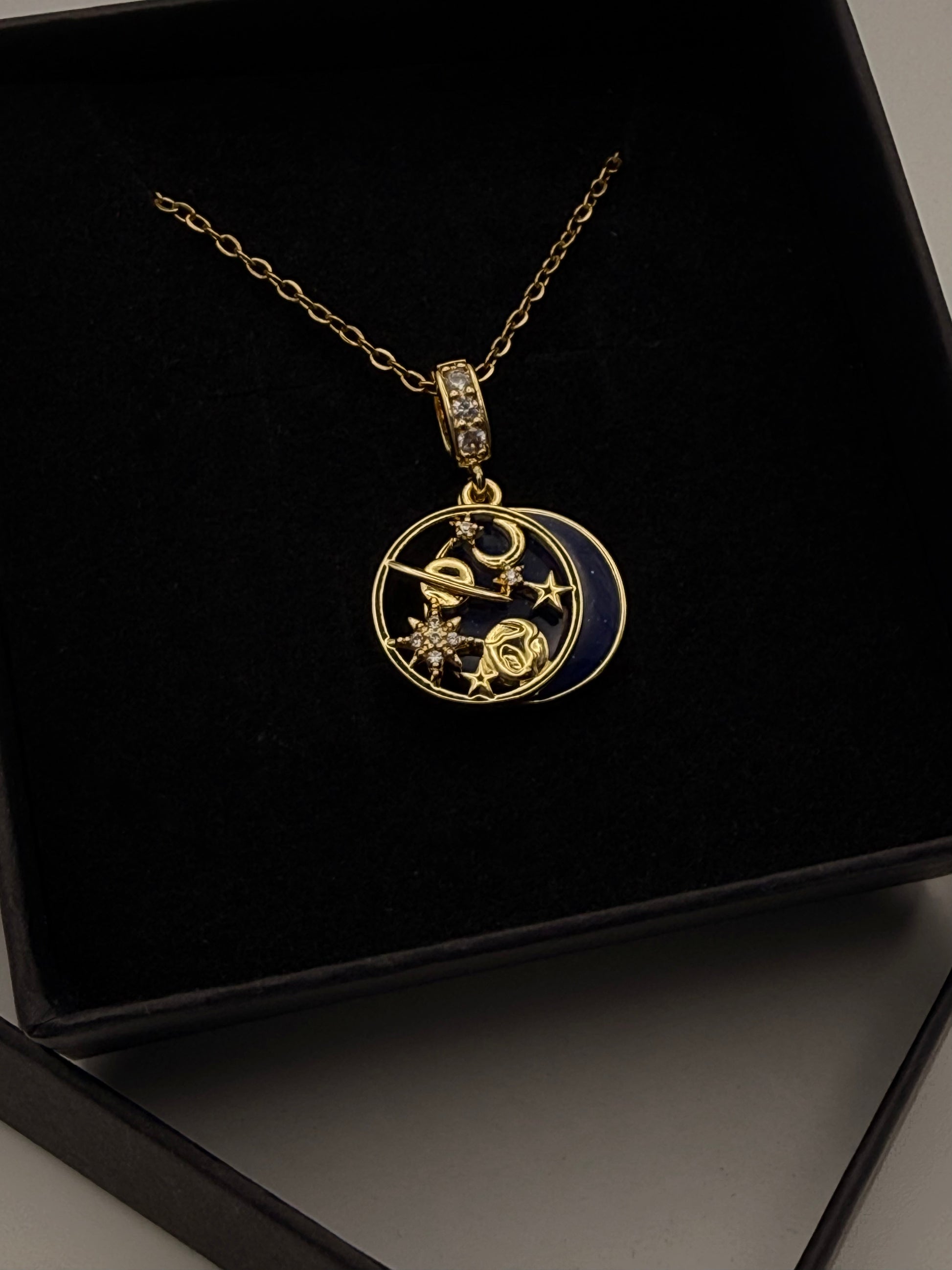 Ce bijou sophistiqué sublime votre style tout en portant la magie du cosmos près de votre cœur.